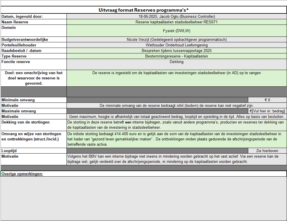 Bijlage 4: Nieuw in te stellen bestemmingsreserve