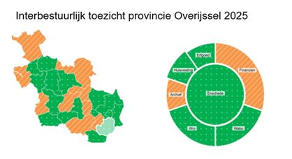 In 2024 kleurde Enschede nog oranje (vanwege Financiën, Wet ruimtelijke ordening en Informatie- en archiefbeheer). Voor 2025 is voor Enschede de kleur groen vastgesteld. Omdat het op meerdere terreinen goed gaat. De provincie ziet echter nog enkele risico’s m.b.t. financiën en archivering waarop acties nodig zijn. Deze beide thema’s worden hieronder verder uitgelicht. |